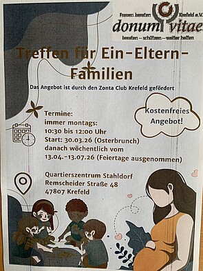 Unsere Gruppe startet wieder nach kurzer Pause am 30.03.2026 im Quartierszentrum Stahldorf. Zum Auftakt laden wir zum Osterbrunch ein!